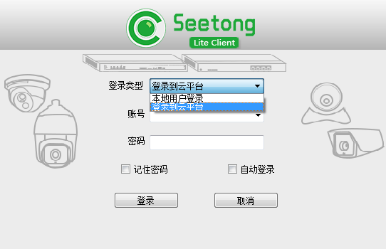 下載安裝好“Seetong網(wǎng)絡監(jiān)控攝像機電腦客戶端”,打開軟件,選擇本地用戶登錄;