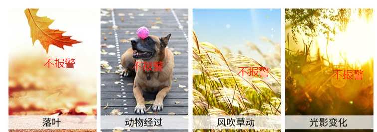 可以排除因風(fēng)吹草動(dòng)、小雨下雪、刮風(fēng)樹(shù)葉搖動(dòng)、光影變化及貓狗車(chē)輛等等各種室
