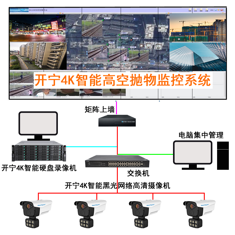 本方案可采用網(wǎng)絡(luò)高清監(jiān)控攝像機(jī)進(jìn)行布控,采用開寧500萬智能黑光網(wǎng)絡(luò)高清攝像機(jī)或4K智能黑光網(wǎng)絡(luò)高清攝像機(jī)和4K網(wǎng)絡(luò)高清硬盤錄像機(jī)組成開寧高空拋物監(jiān)控系統(tǒng)進(jìn)行布控,下面以開寧4K智能黑光網(wǎng)絡(luò)高清攝像機(jī)為例。