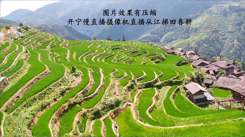 - 文化傳播:通過慢鏡頭展示傳統(tǒng)農(nóng)具使用,結(jié)合非遺傳承人解說,傳遞農(nóng)耕文化價值。如下圖開寧慢直播攝像機應(yīng)用于貴州從江梯田春耕慢直播