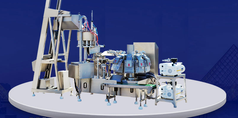 上袋-打印生產日期-開袋-下料-(液體填充)-捅料或振動-熱封(抽真空封口)-整形及輸出。