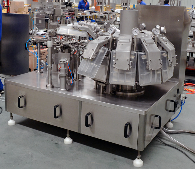 1、給袋填充旋轉系統:主要由304不銹鋼加工件、精鑄304不銹鋼部件、高精度軸承、塑料軸承、工程塑料滾輪等符合食品包裝衛生標準的材料加工、裝配而成;保證食品衛生、設備工作安全可靠及便用壽命;