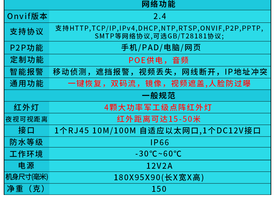 ★支持手機和電腦遠程監(jiān)控;音頻、POE供電功能可選。