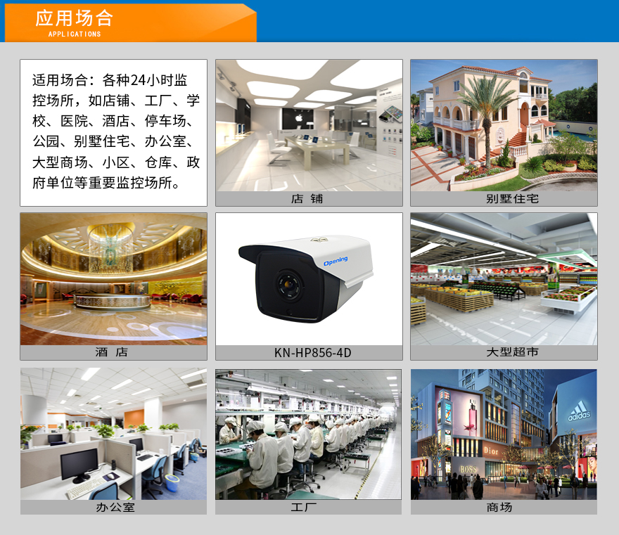 ★適用場合:小區(qū)、工業(yè)園區(qū)、學校、工廠、店鋪、倉庫、辦公室、商場、別墅住宅、果園、養(yǎng)殖場、停車場、醫(yī)院、公園、政府單位等監(jiān)控場所。