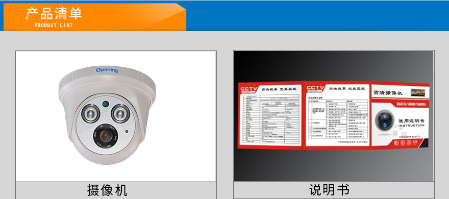 ★2顆晶元LED紅外陣列燈,紅外10-30米,300萬高清定焦鏡頭(4mm/6mm可選),DC12V供電。