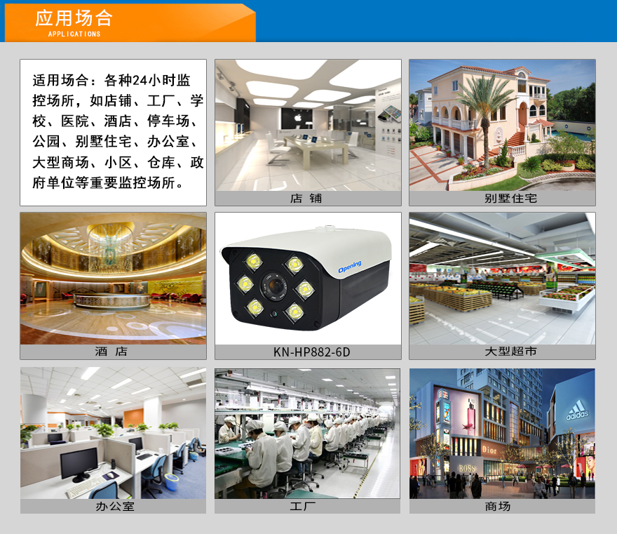 ★適用場所:小區(qū)、工業(yè)園區(qū)、學校、工廠、別墅住宅、果園、養(yǎng)殖場、停車場、醫(yī)院、公園、政府單位等監(jiān)控場所。