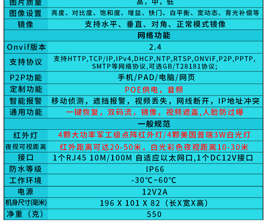 ★支持手機和電腦遠程監(jiān)控;音頻、POE供電功能可選。