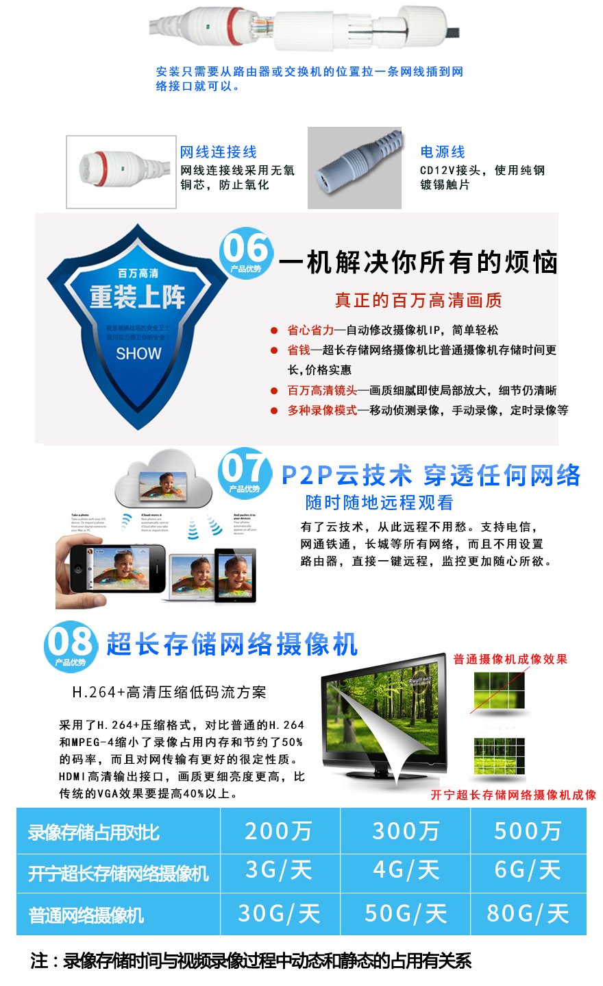★超長存儲網絡高清,1天只需10-20G存儲空間。