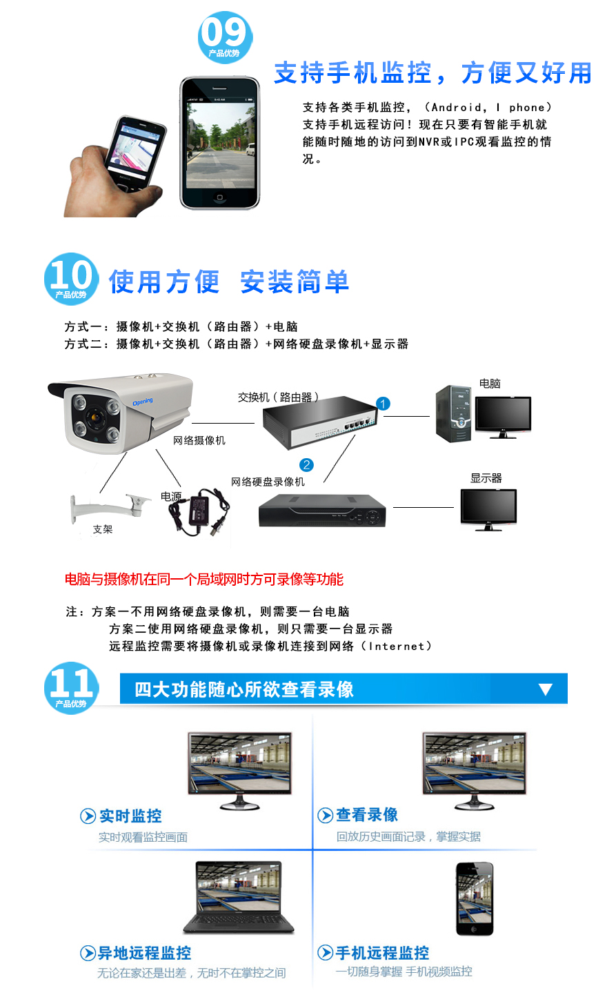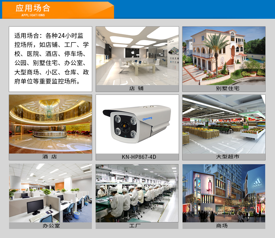 ★適用場所:小區(qū)、工業(yè)園區(qū)、學校、工廠、別墅住宅、果園、養(yǎng)殖場、停車場、醫(yī)院、公園、政府單位等監(jiān)控場所。