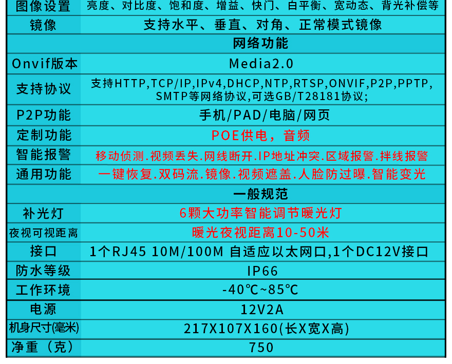- ★這是一款智能黑光全彩網(wǎng)絡(luò)高清攝像機(jī),24小時(shí)日夜全彩監(jiān)控,夜晚監(jiān)控如白天,徹底告別黑白夜視。