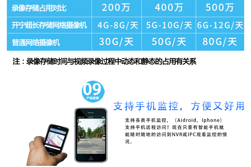 ★智能黑光全彩監(jiān)控,1天最低只需3G存儲(chǔ)空間。