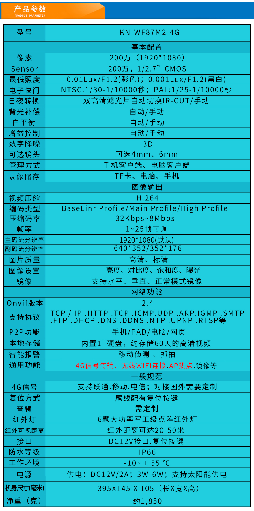 - 4G無(wú)線網(wǎng)絡(luò)監(jiān)控?cái)z像機(jī) KN-WF87M2-4G