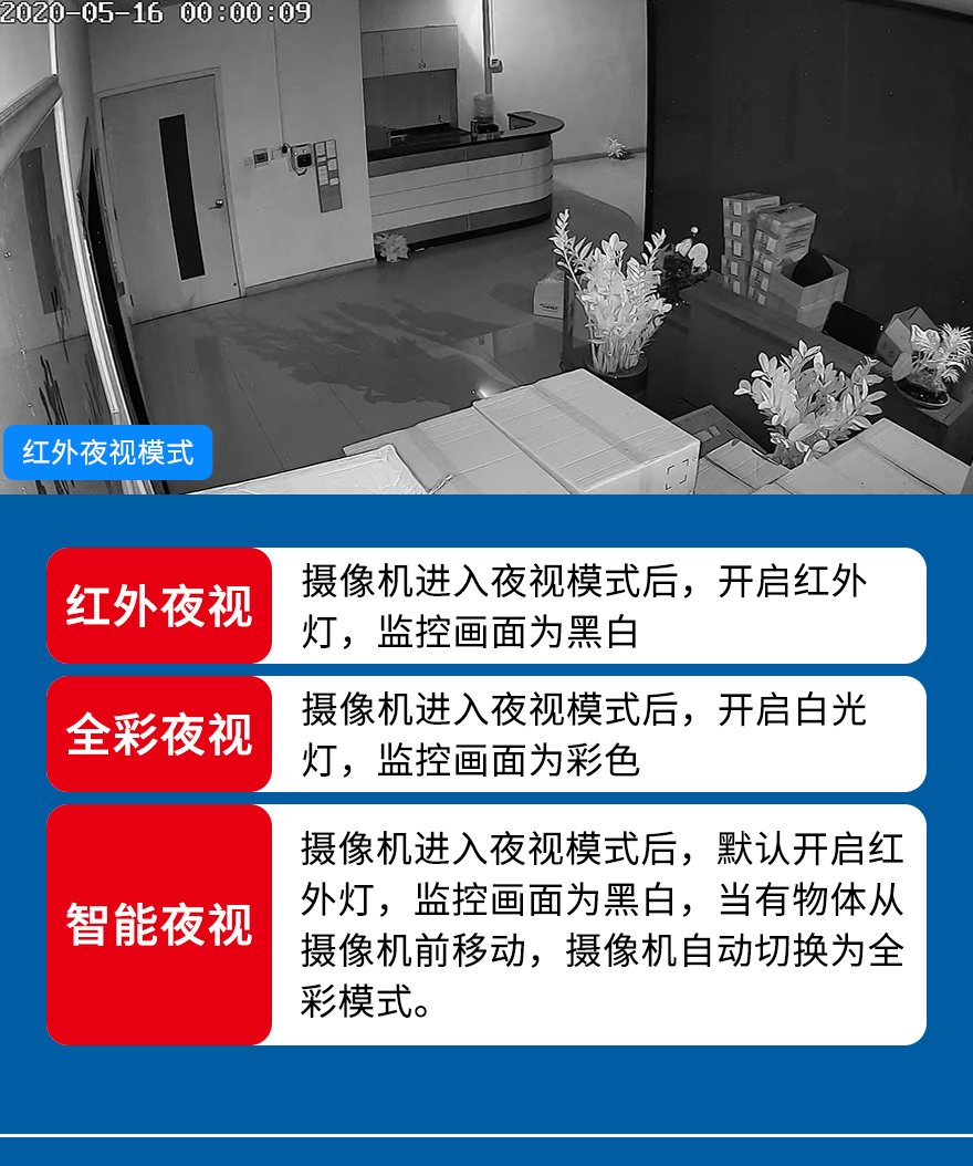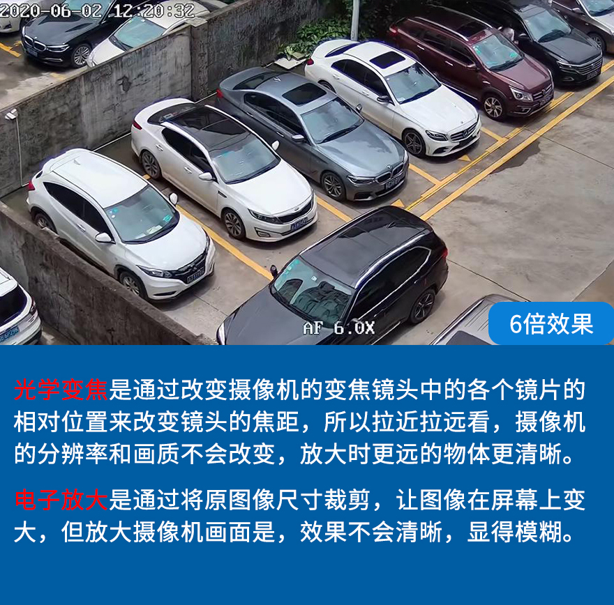 ★4顆大功率點陣紅外燈+4顆大功率點陣白光燈,夜視10-50米左右,高清光學(xué)自動6倍變焦鏡頭;