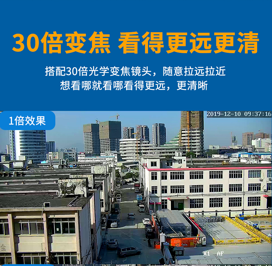 ★9顆晶元LED智能紅外陣列燈,紅外120米左右;9顆暖光燈,夜視90米左右,30倍光學變焦鏡頭,6寸IP66防水外觀,DC12V供電。