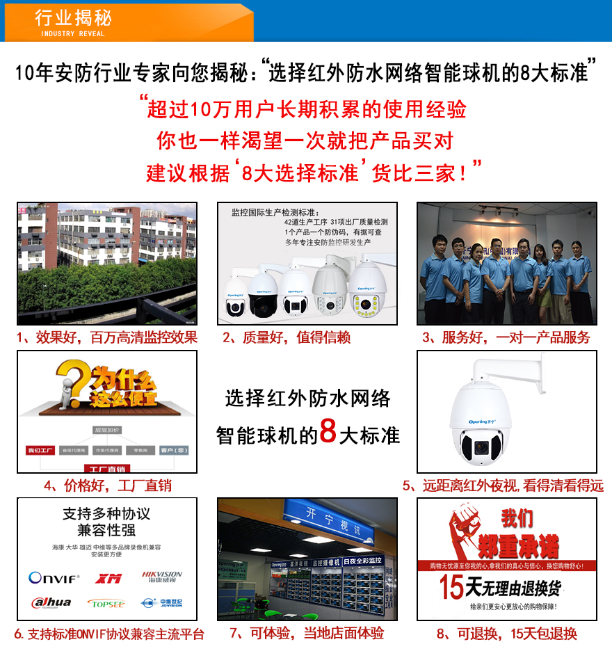 ★強(qiáng)大兼容性,支持標(biāo)準(zhǔn)的ONVIF,無縫對接???,大華,雄邁CMS,美電威視AEVISION,Milestone等平臺,支持RTSP實時流協(xié)議,支持大華、???D控制協(xié)議;