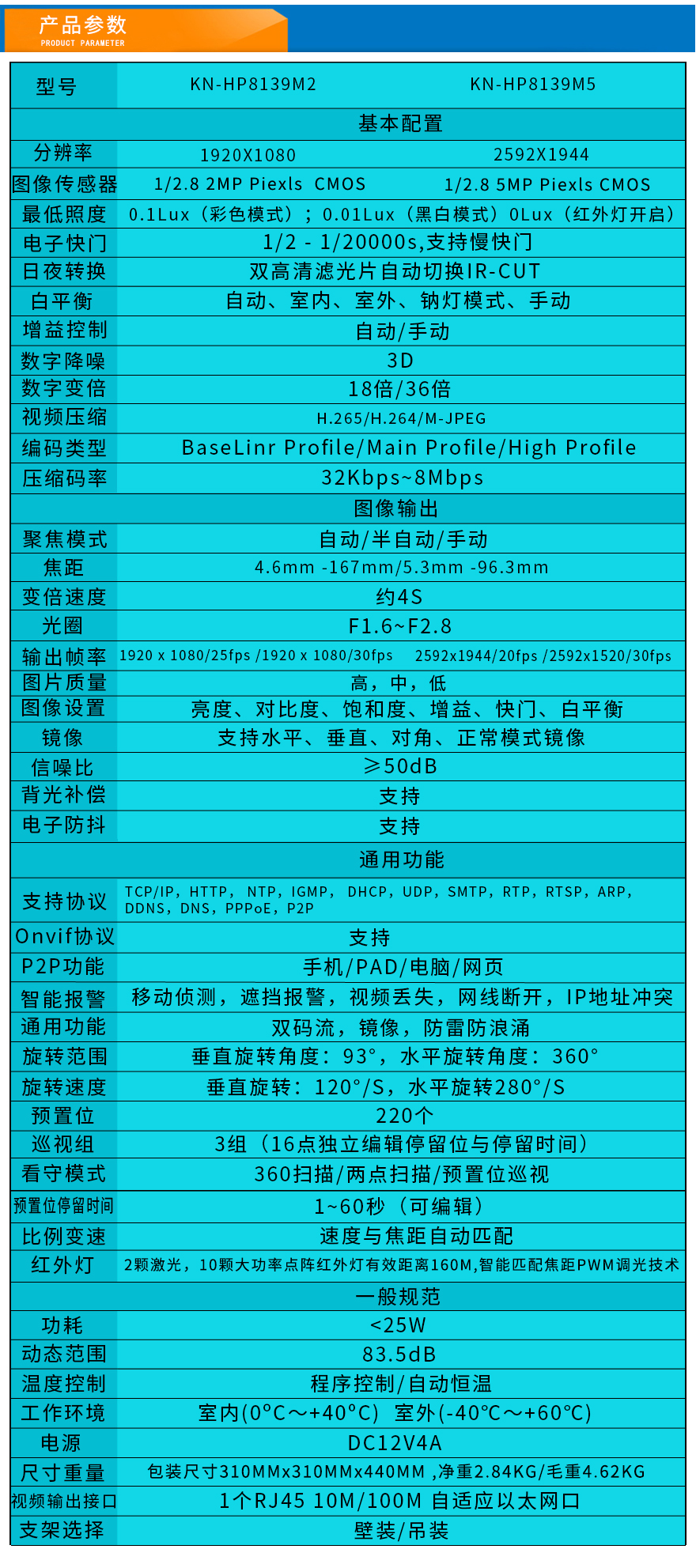 - 紅外防水網(wǎng)絡(luò)智能球機(jī) KN-HP8139M2