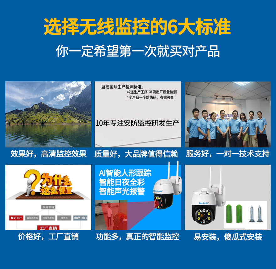 - 1、無線變焦智能全彩小球,一個(gè)小球就是1套監(jiān)控系統(tǒng);