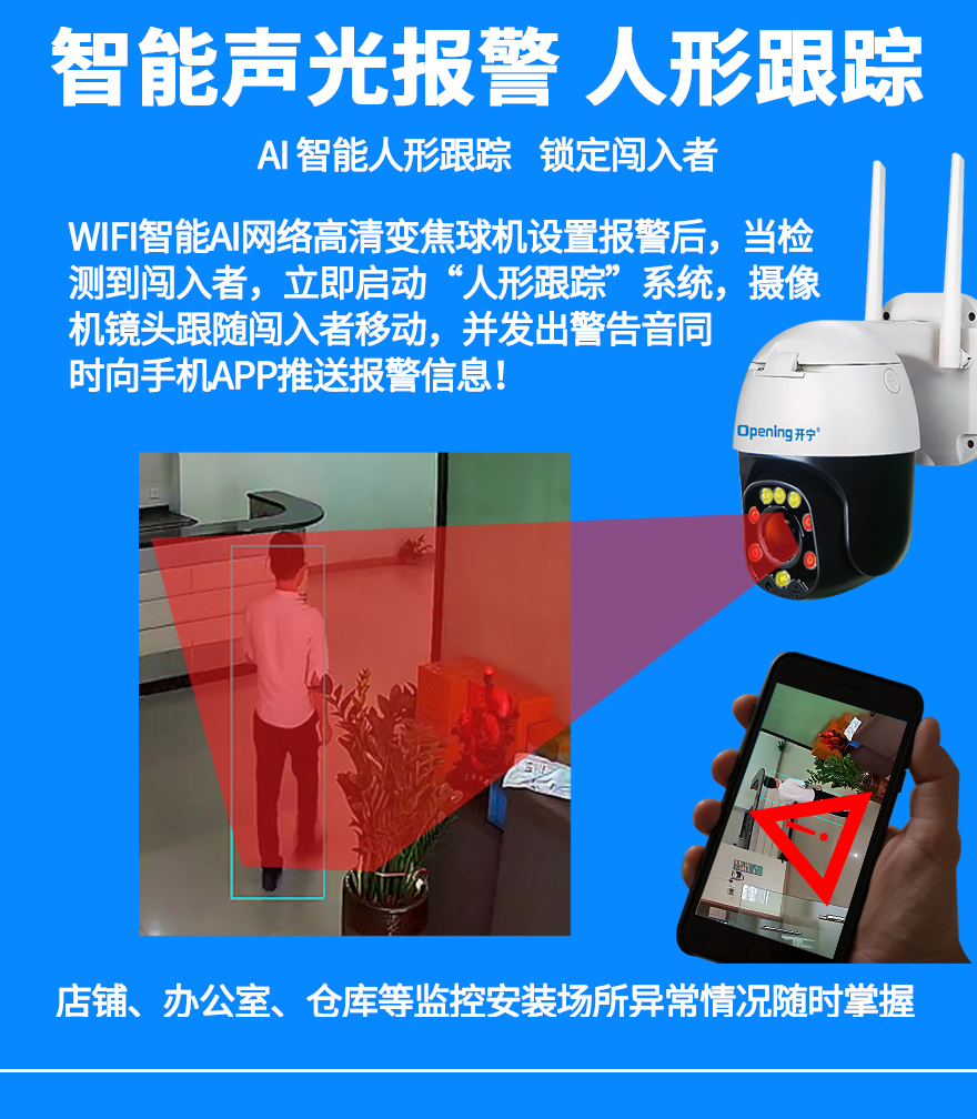 4. 智能AI網(wǎng)絡(luò)高清攝像機(jī),人臉人形檢測,人形自動(dòng)跟蹤,智能語音警戒報(bào)警;