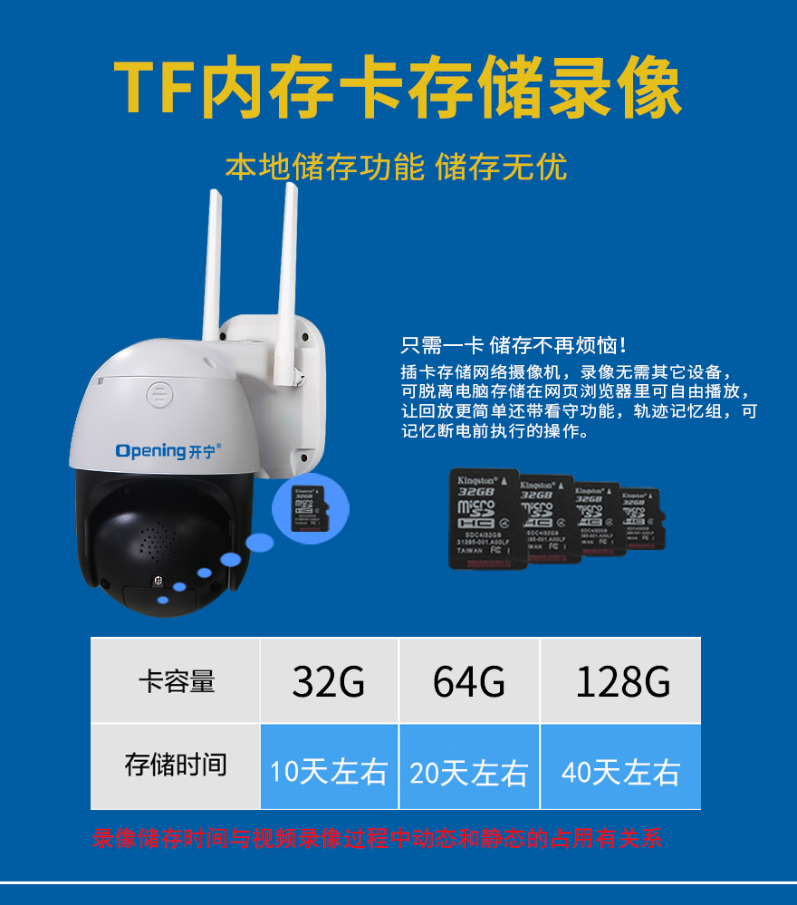 3. 海思H.265壓縮算法,超長存儲(chǔ)錄像;最大支持256G存儲(chǔ)卡(30-60天左右錄像);