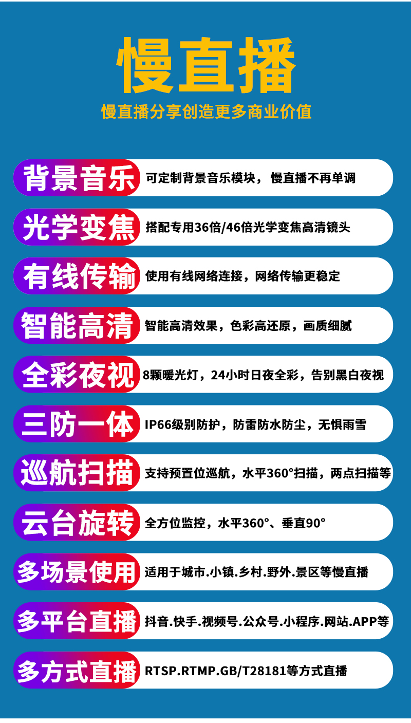 2、不僅可以監(jiān)控錄像,還可以實(shí)時慢直播分享創(chuàng)造更多商業(yè)價值;