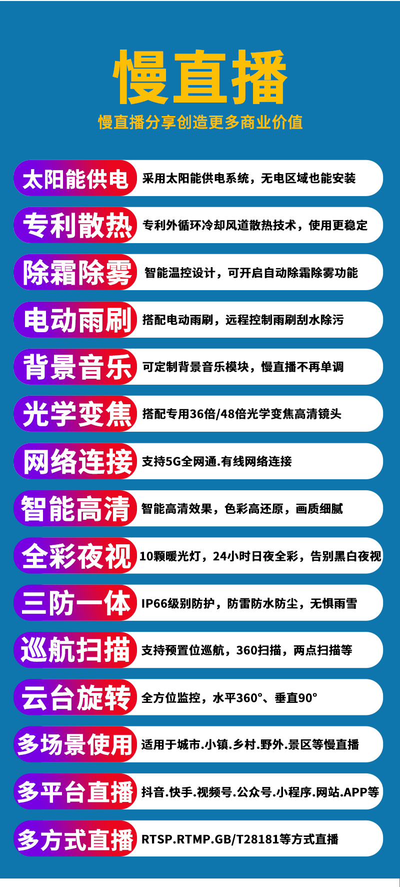 6、不僅可以監(jiān)控錄像,還可以實(shí)時(shí)慢直播分享創(chuàng)造更多商業(yè)價(jià)值;