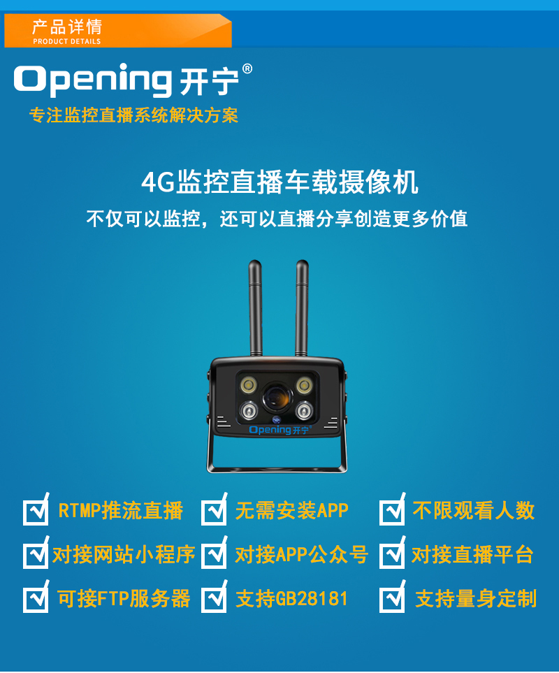 - 1、300萬(wàn)/500萬(wàn)車載4G監(jiān)控直播攝像機(jī),1個(gè)攝像機(jī)就是一套監(jiān)控直播系統(tǒng);金屬外觀,IP66防水等級(jí);