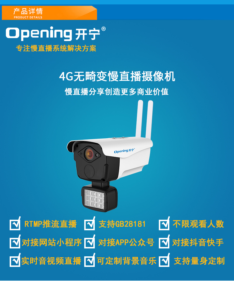 - 1、4G300萬/500萬/800萬/1200萬無畸變雙光慢直播高清攝像機(jī),一個(gè)攝像機(jī)就是一套慢直播系統(tǒng);