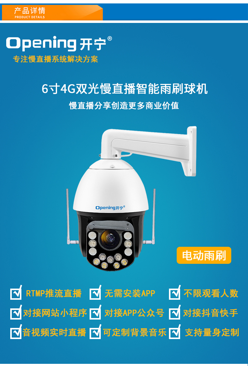- 6寸4G雙光全彩慢直播智能雨刷球機(jī)