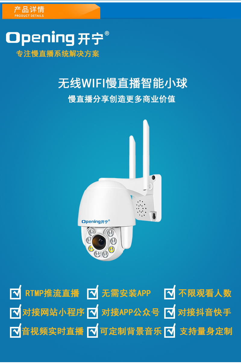 - 1、6倍變焦300萬有線/WIFI慢直播智能小球,一個(gè)球機(jī)就是一套慢直播系統(tǒng);支持水平和垂直旋轉(zhuǎn);