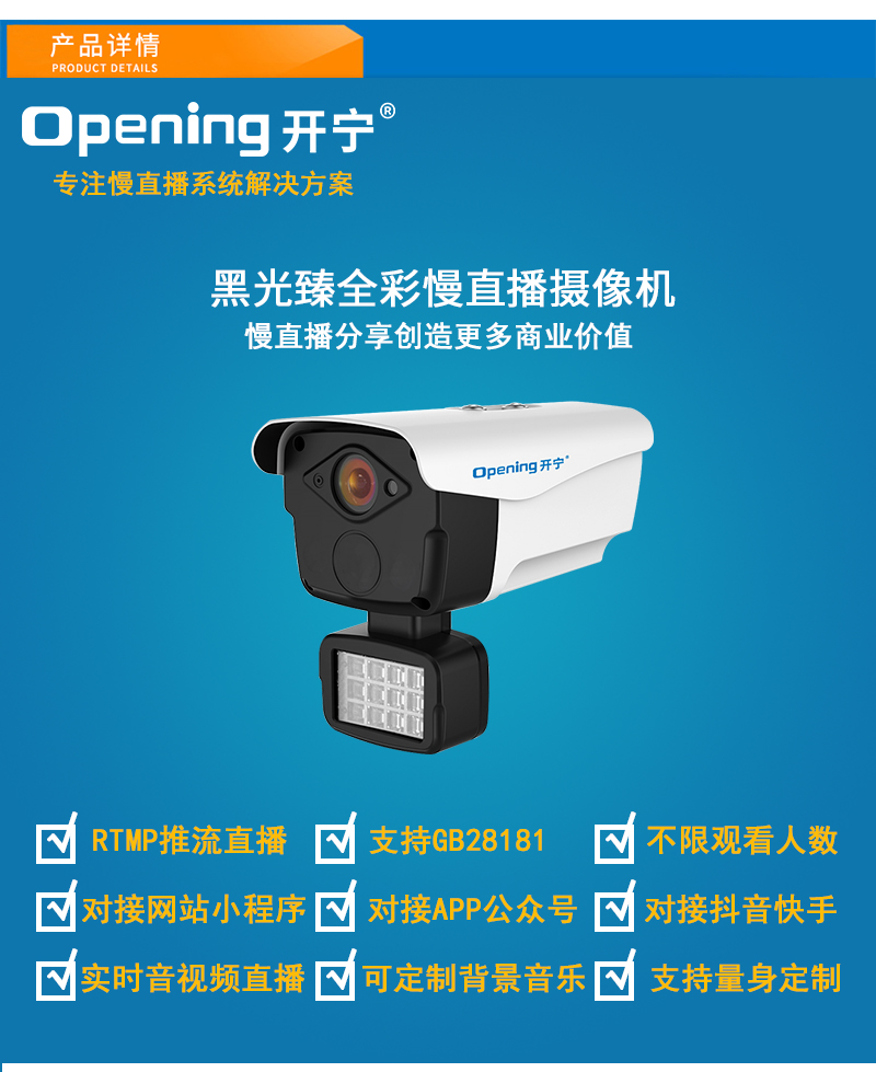 - 1、500萬/800萬1/1.8黑光臻全彩全彩慢直播高清攝像機,一個攝像機就是一套慢直播系統(tǒng);